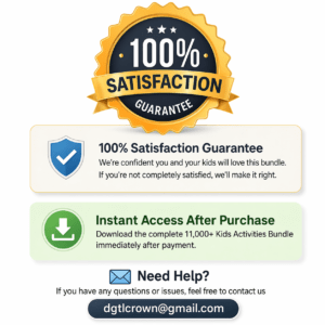 The bundle is designed for children aged 3 to 10 years. Activities range from simple shapes and letter recognition for toddlers to more advanced puzzles and math for older kids. There’s something for every level!