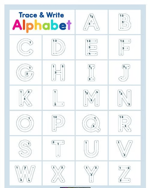 Help kids master writing skills with guided dotted letter tracing from A to Z, uppercase and lowercase.
